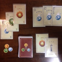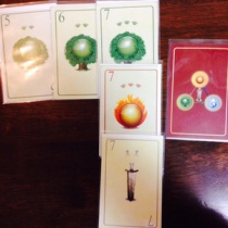 昨日、ゲームマーケット2015春の出展作品「魔法陣ラミー」を萬印堂様に入稿しました。写真はテストプレイ版です。紆余曲折ありましたが、なんとか入稿までたどり着けました。本作「魔法陣ラミー」ですが、その名の通りラミー系のカードゲームとなっております。ラミーと ...