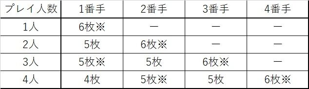 ※配られたカード(5枚、ないし6枚)の中から1枚選び、山札の中程に戻します。